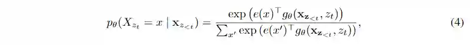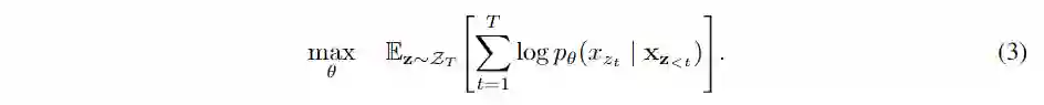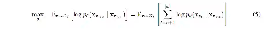 形式上,将某个因子分解顺序(factorization order)序列分成两部分,一个非目标子序列和一个目标子序列,为切分点。新的语言建模的目标函数为:
