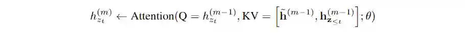 令第个segment中第层生成的隐状态序列为,其中表示隐层维度。则segment中第层的隐状态序列可按如下规则生成: