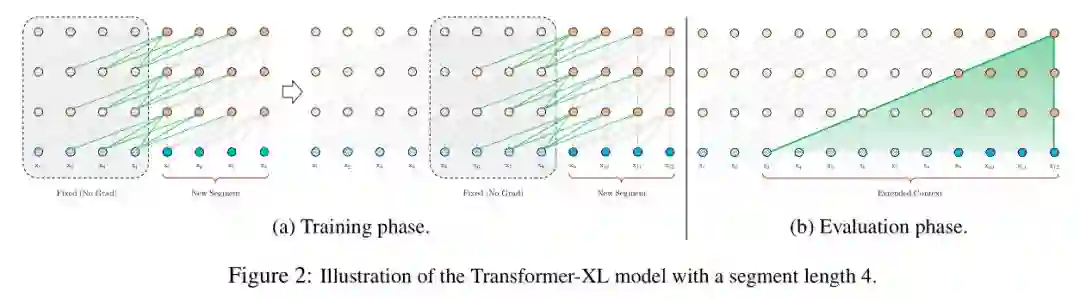 片段级的递归机制(Segment-Level Recurrence with State Reuse),引入memory模块(cache之前一个或多个segment的隐状态信息),循环建模片段间的联系