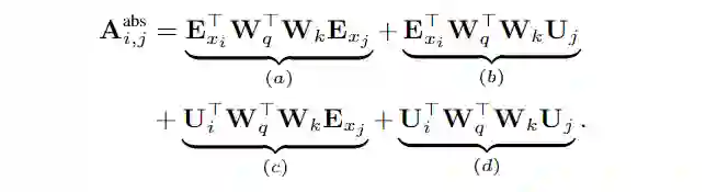 首先,在标准的transformer中,在同一个segment下的query向量和key向量的注意力得分可分解为: