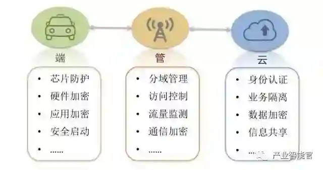 车载智能终端:除了硬件采取加密措施,例如芯片防护、硬件加密外,开启车联网终端安全监测分析,加强对终端应用程序的应用加密、安全启动等。