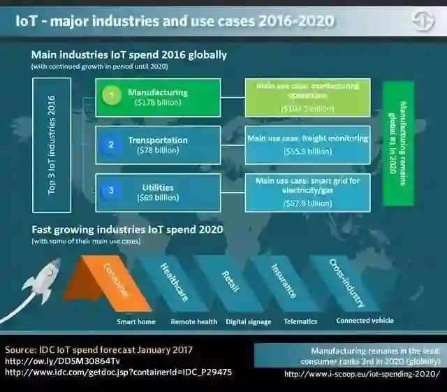 在2020年之前,制造业、运输业和公用电力事业将是对物联网(IoT)投资最大的行业。