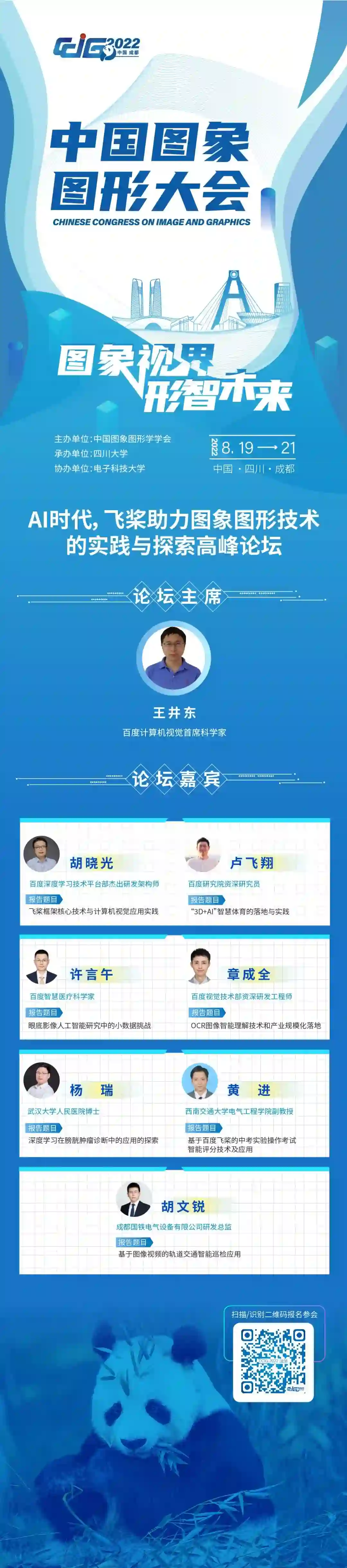 在CCIG 2022期间,会议将举办AI时代,飞桨助力图象图形技术的实践与探索高峰论坛,研讨会信息如下: