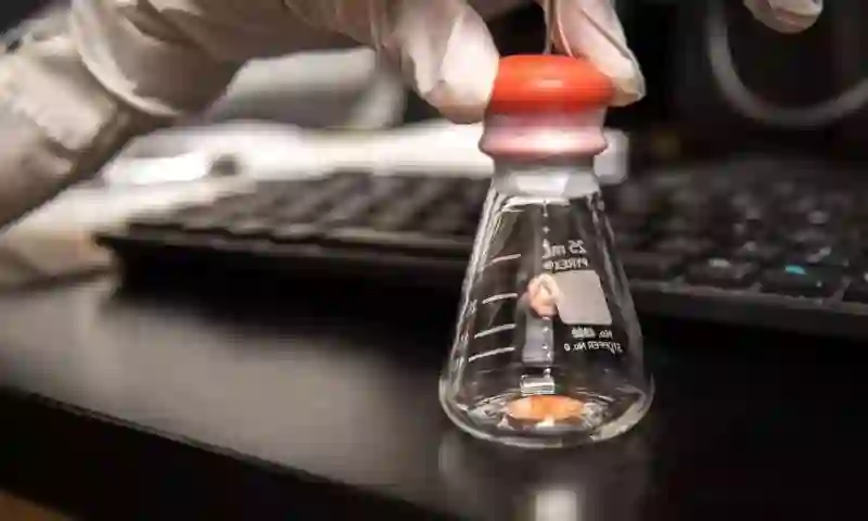 对非活性锂样本加入水。图片来源:David Baillot/UC San Diego Jacobs School of Engineering