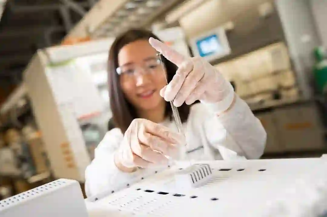 方成成使用 UCSD 研究人员开发的一种方法,定量测定非活性锂。图片来源:David Baillot/UC San Diego Jacobs School of Engineering
