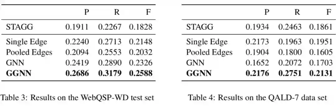 对于查询图,门控图神经网络(Gated Graph Neural Networks, GGNN)通过基于相邻节点和关系迭代更新图节点的表示来处理查询图。作者采用 GGNN 进行语义解析,以学习语义图的矢量表示。作者表示该文应该是首个将 GGNN 应用于语义解析和 KBQA 的工作。