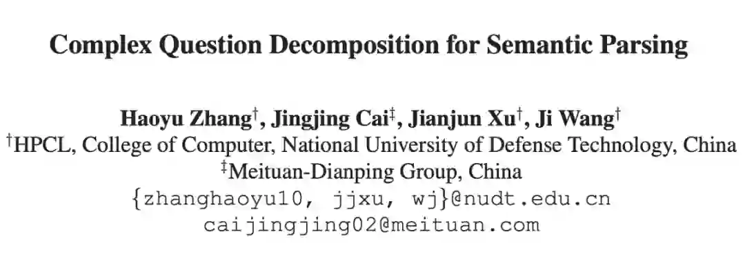 论文标题:Complex Question Decomposition for Semantic Parsing