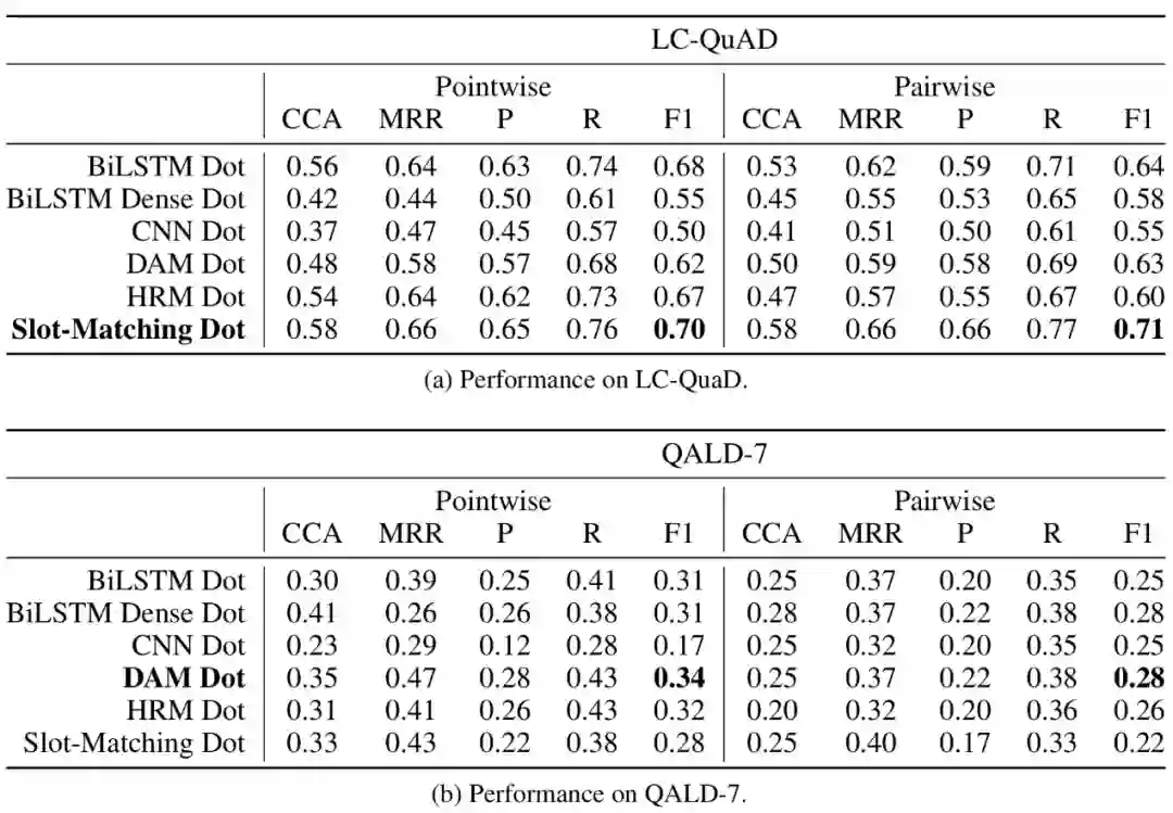 作者使用了多个模型进行实验,在此主要介绍作者提出的新颖的槽位匹配模型。作者认为现有的方法将问题和查询的核心链(core chain)都编码为各自的向量表示形式,这迫使两个序列进行复杂的转换,可能会阻碍获得最佳性能。