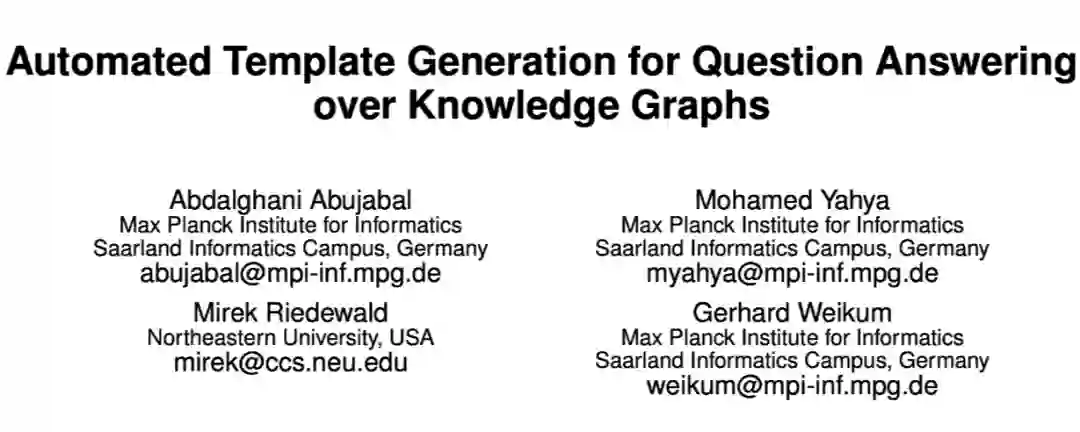 论文标题:Automated Template Generation for Question Answering over Knowledge Graphs