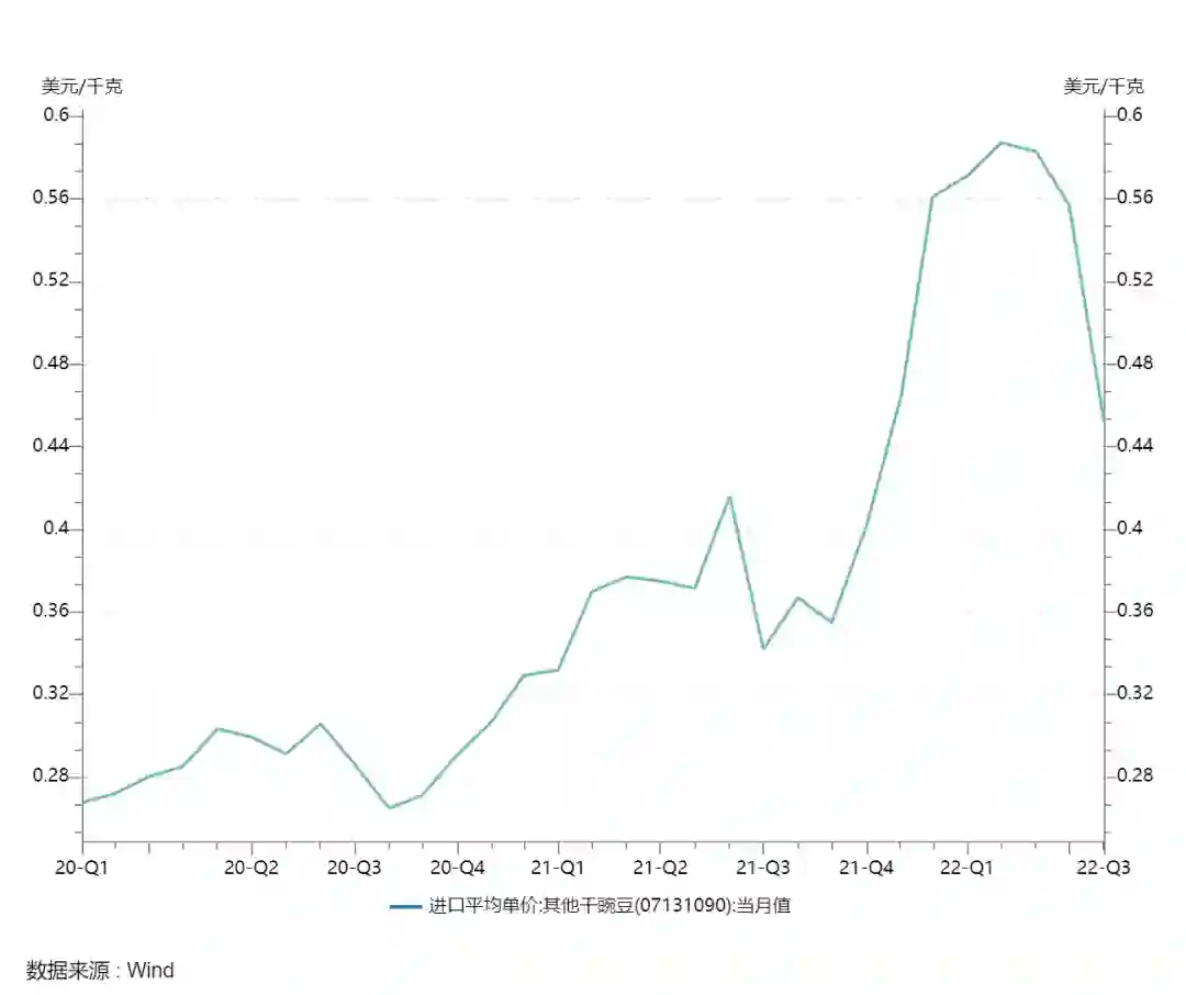 图:干豌豆进口平均单价;来源:Wind