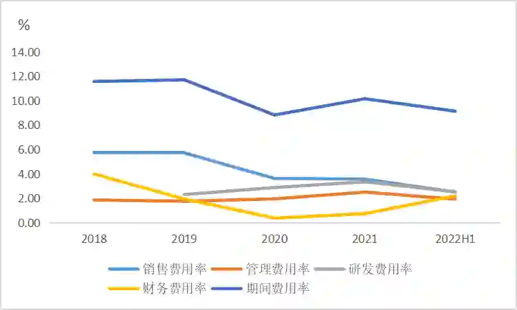主要受新会计准则影响,双塔食品将运费归至主营业务成本,同期销售费用率持续下降,2019-2022H1销售费用率分别为5.71%、3.62%、3.56%、2.5%。