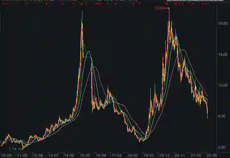 2010年上市至今,双塔食品股价共经历过两波大的上涨周期,最近的一次是2019-2020年,其股价随着人造肉概念的火爆一路飙涨,到达19.96元的历史最高点后开始一路下跌。