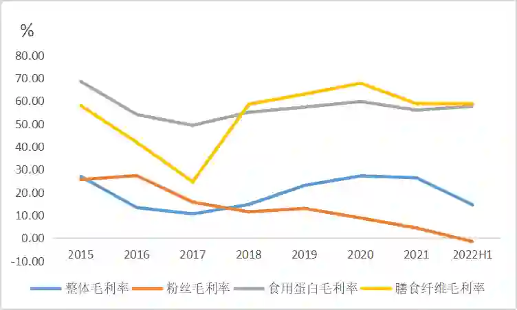 图:双塔食品各项业务毛利率;来源:Wind,36氪整理