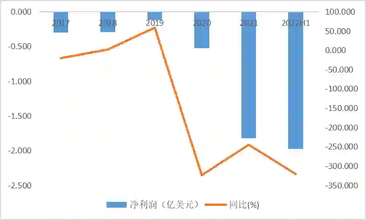 图:Beyond Meat各财年净利润及增速,2022H1为截至2022年7月2日止6个月;来源:Wind,36氪整理