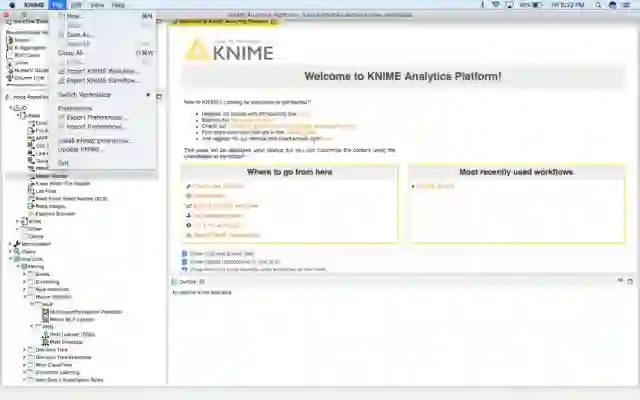 安装该平台,并为KNIME设置工作目录以存储其文件:
