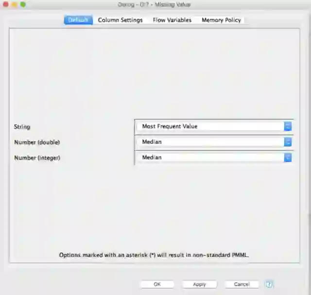 现在,当我们执行它时,在Missing value节点的输出端口上已经准备好了具有imputed values的完整数据集。在我的分析中,我选择了imputation 方法为: