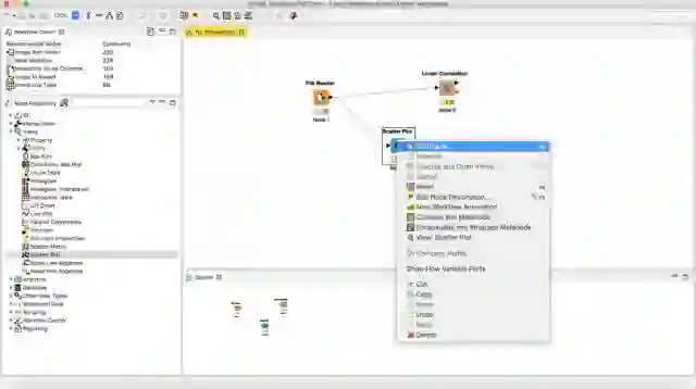 在左上角的工作流指导会向你展示KNIME社区特定节点的使用百分比。节点存储库将显示特定工作流可以拥有的所有节点,这取决于你的需要。当创建第一个工作流时,你还可以浏览示例工作流来检查更多的工作流。这是迈向解决任何问题的第一步。