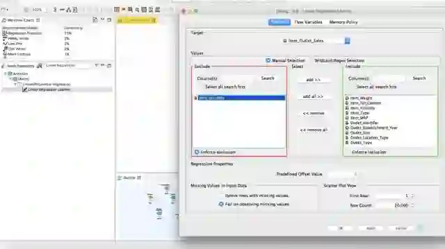 这是你现在的屏幕呈现。在Configuration选项卡中,排除Item_Identifier并在顶部选择目标变量。完成这个任务之后,需要导入testdata来运行模型。