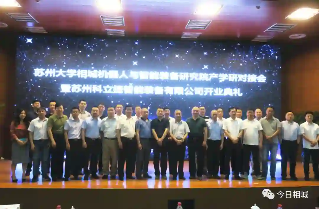 6月21日上午,苏州大学相城机器人与智能装备研究院产学研对接会暨苏州科立捷智能装备有限公司开业揭牌仪式在相城阳澄湖国际科创园举行。