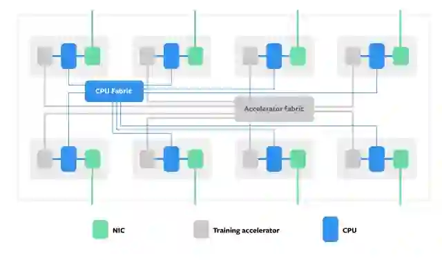 Zion的高内存容量和高带宽,得益于两个高速fabric,一个用来连接所有的CPU,另一个用来连接所有的加速器。除此之外,还得益于其灵活的架构,可以使用顶部扩展到单个机架中的多个服务器机架式(TOR)网络交换机。