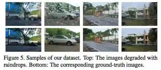 图5:数据集的样本。上:有雨滴的图像。下:相应的ground-truth图像。