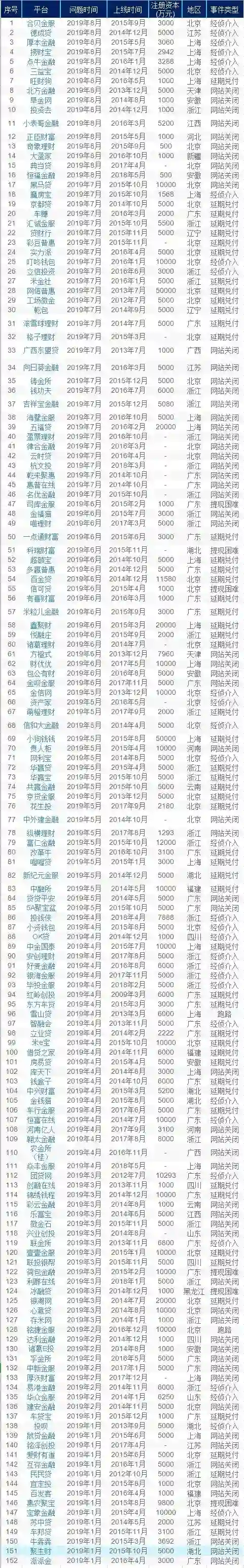 附:截止2019年9月P2P企业“爆雷”名单,图片来源:网贷之家。