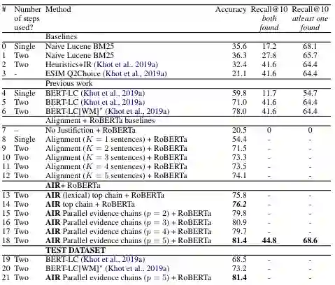 [2] Jeffrey Pennington, Richard Socher, and Christopher Manning. 2014. Glove: Global vectors for word representation. In Proceedings of the 2014 conference on empirical methods in natural language processing (EMNLP), pages 1532–1543.[3] Daniel Khashabi, Snigdha Chaturvedi, Michael Roth, Shyam Upadhyay, and Dan Roth. 2018a. Looking beyond the surface: A challenge set for reading comprehension over multiple sentences. In Proceedings of the 2018 Conference of the North American Chapter of the Association for Computational Linguistics: Human Language Technologies, Volume 1 (Long Papers), pages 252–262.[4] Tushar Khot, Peter Clark, Michal Guerquin, Peter Jansen, and Ashish Sabharwal. 2019a. Qasc: A dataset for question answering via sentence composition. arXiv preprint arXiv:1910.11473.[5] Sun Kim, Nicolas Fiorini, W John Wilbur, and Zhiyong Lu. 2017. Bridging the gap: Incorporating a semantic similarity measure for effectively mapping pubmed queries to documents. Journal of biomedical informatics, 75:122–127.