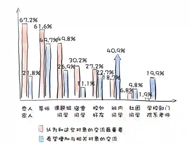 恋人及家人、导师的交流最为重要,最希望与导师、班内同学增加交流。