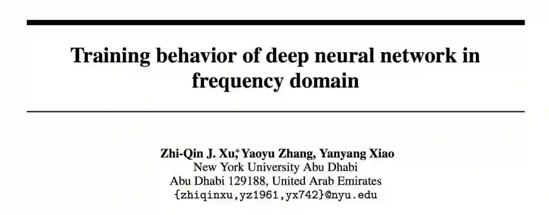 [1]. Zhi-Qin J. Xu, Yaoyu Zhang, Yanyang Xiao. Training behavior of deep neural network in frequency domain, arXiv preprint arXiv: 1807.01251. (May 18, 2018 submitted to NIPS, first submitted to arXiv on Jul 3, 2018)