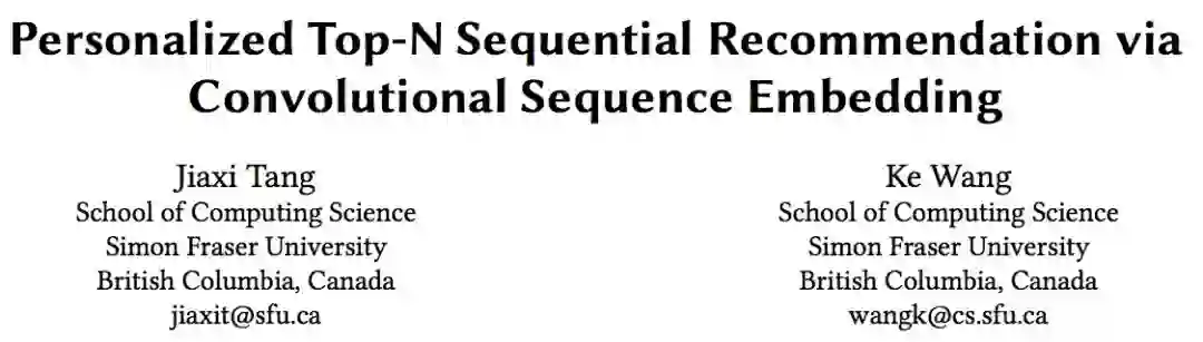 【论文】:Personalized Top-N Sequential Recommendation via Convolutional Sequence Embedding