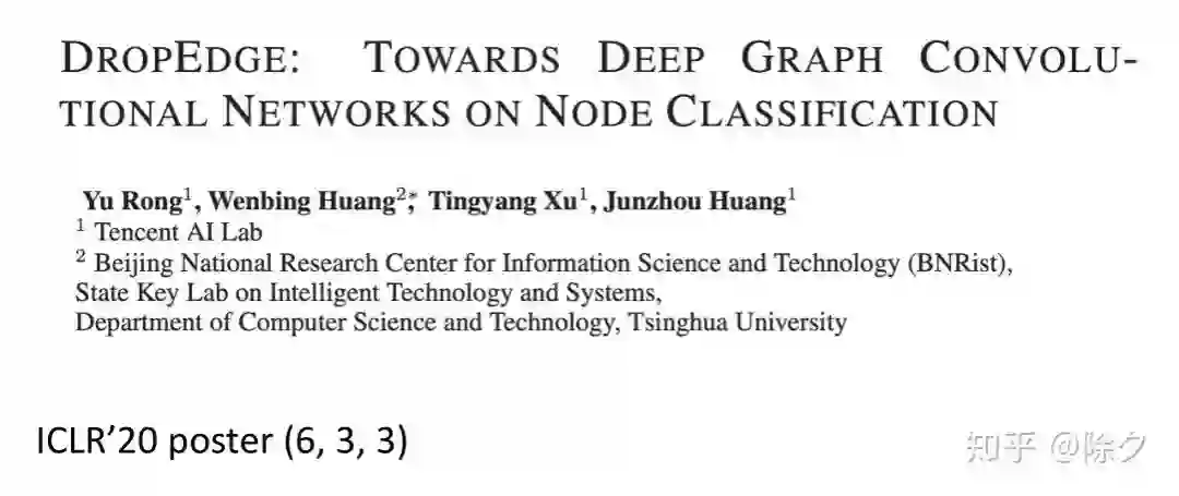 ICLR 2020 有一篇论文探索了图神经网络无法做深的两个原因 (过拟合和过平滑) 并提出了一种简单有效的方法,随机地删除边 DropEDGE。过拟合指的是使用复杂模型去拟合少量数据的时候造成的泛化能力变差的情况。它在深度学习模型中是广泛存在的。过平滑则是指在图神经网络消息传递过程中,所有节点的输入特征会收敛到一个和输入无关的子空间的过程。这一过程会导致输入 GCN 的特征失效并造成梯度消失。过平滑是 GCN 模型特有的问题,它造成了深层图神经网络的训练困难。