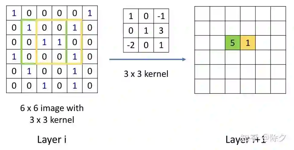 我们先来看下卷积是如何聚合信息的。一个 3×3 的权重矩阵作为滑动窗口,Element-wise 乘上图像对应位置的值后相加求和。它相当于对 (x, y) 这个位置的周边8个方向的邻居,做了加权求和。在图结构中我们没法固定窗口,不过也可以用把邻居信息加权求和的思想来聚合信息。这里的邻居都是在空间上的概念,所以这种方法也叫作 Spatial-based Convolution。