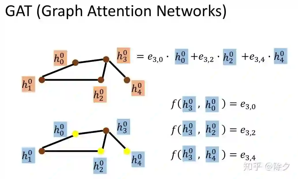 GAT 是在 MoNET 上的延续。它邻居之间边的权重 u(x, y) 是模型自动学出来的。