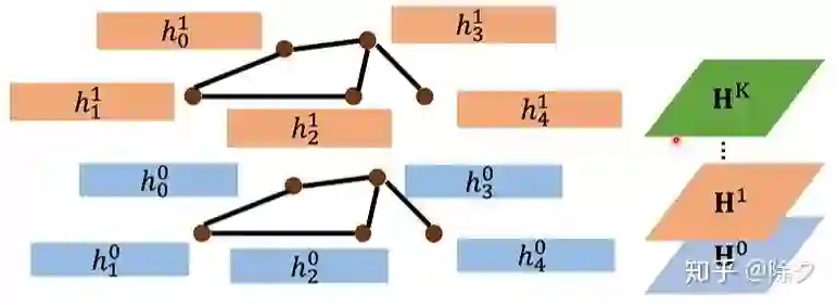 以此类推,我们依次计算距离为3,4……k的邻居。H^K 为在第 K 层所有的叠加向量。