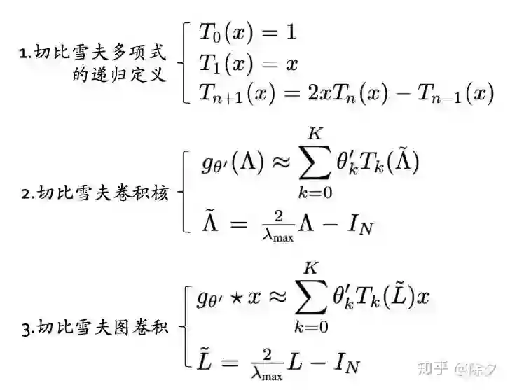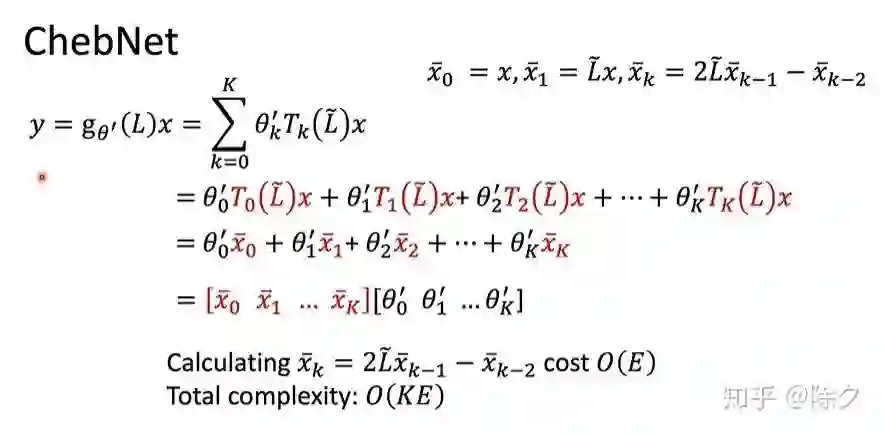 为解决第三个问题,ChebNet用了一个 Chebyshev polynomial 把复杂度降低至O(K|E)。E 为边的数量。这个多项式函数是用一个递归方式定义的。