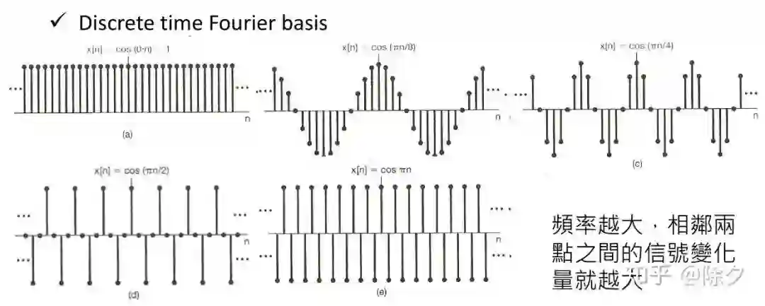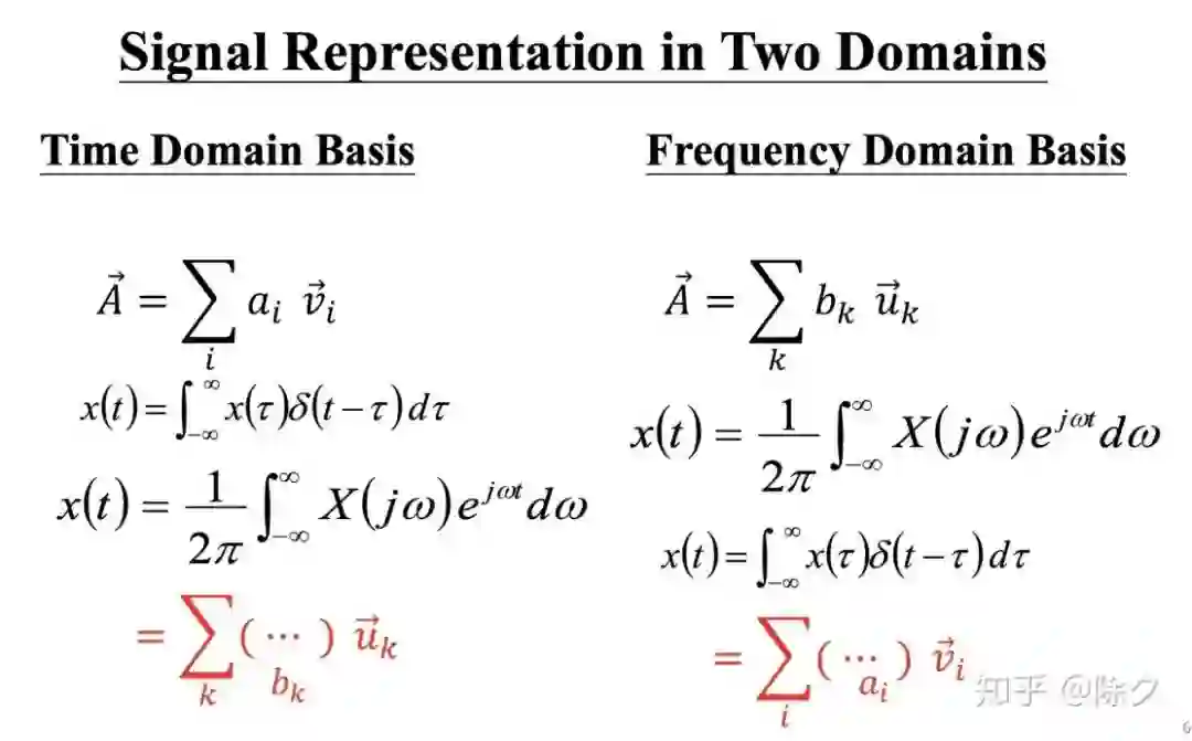以上是在空间域上的,基向量一般是空间坐标轴 x, y, z。在频域上的基向量一般为 cos 和 sin。