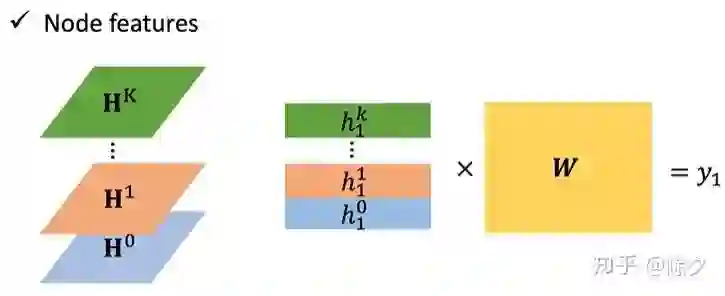 在图神经网络中,对于输入的节点,会先经过一个嵌入层来得到节点的嵌入表征 h。在 Aggregate 上,一个直觉的做法是,把某个节点的邻居的嵌入表征都乘上下一层的可训练权重