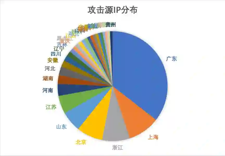 2. 分析其中一次攻击,攻击请求15423249,提取到攻击源IP 1439个,攻击IP分散,攻击源主要分布在境内,攻击源分布如下图: