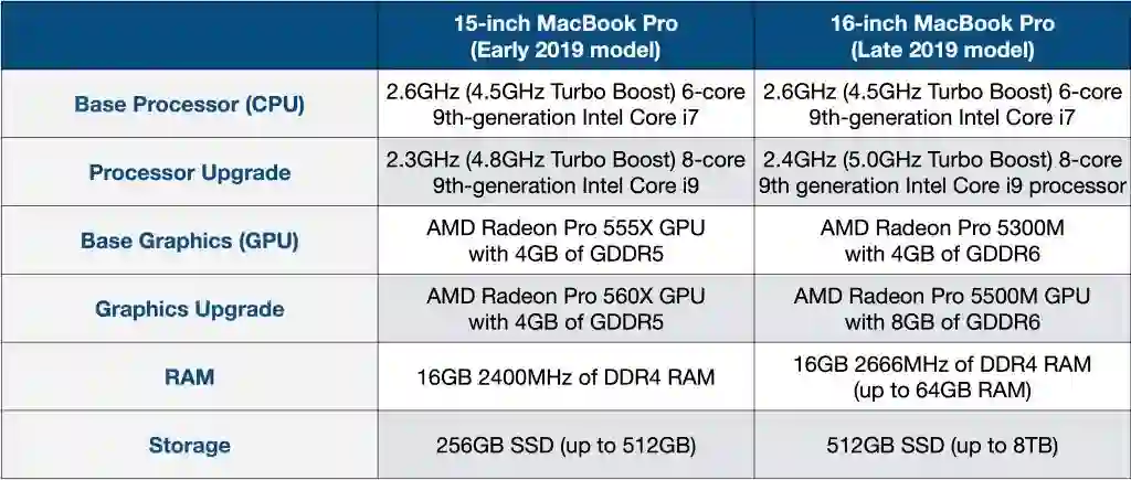 为了解答这个问题,我们将对 2019 年 15 英寸和 16 英寸 MacBook Pro 进行比较,希望对大家有所帮助。