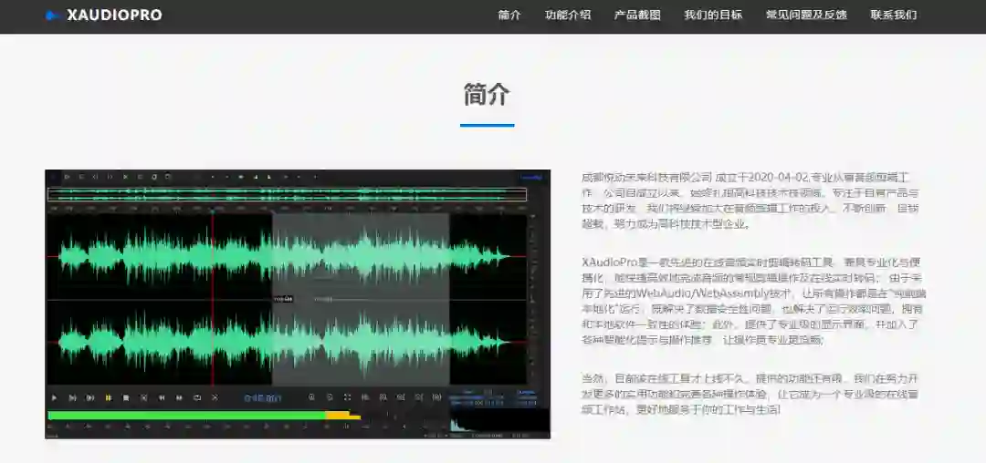 XAudioPro 是一款在线音频实时剪辑转码工具,兼具专业化与高效,能快捷高效地完成音频的常规剪辑操作及在线实时转码。具有媲美专业级的剪辑功能,支持多轨编辑、转码去噪提取音乐伴奏等功能;跨平台的在线应用,打开浏览器就能和本地软件一致的体验;支持多种常见的音频格式,满足绝大多数非视听专业用户的日常工作处理。