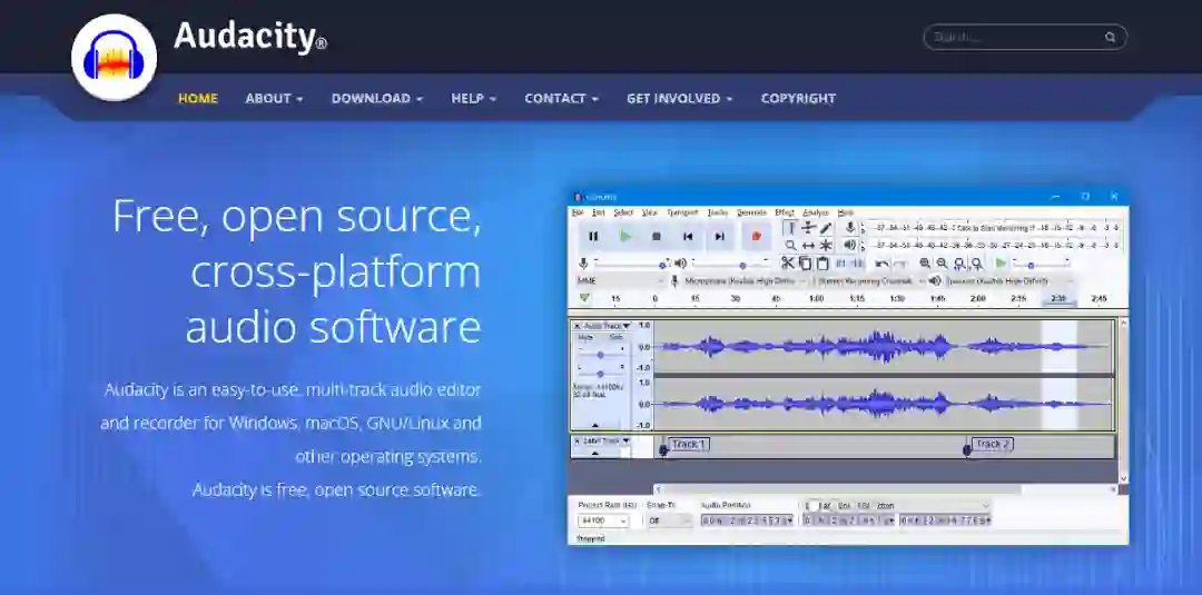 Audacity 是一款免费开源的音频处理软件,支持专业的多轨道编辑和录制多个输入源(如麦克风、混音器、播客、流音频)。Audacity 拥有相对专业的操作界面,音频录制、编辑以及音频效果增强功能齐全,可以看作是Audition的替代品。