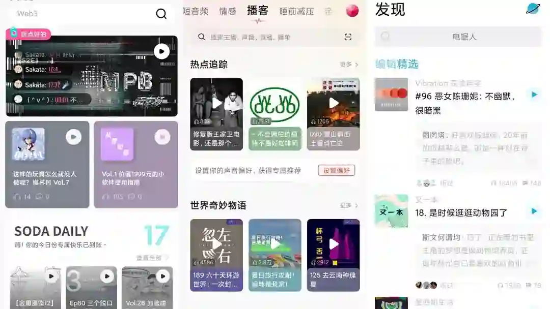 虽然是珍贵的流量"洼地",但其实目前多数中文播客平台仍然没有走出“小众”的圈层。据统计,截至2022年2月,除了主流音频平台外,目前国内常态化运营的播客客户端仅剩荔枝、汽水儿和小宇宙三家。