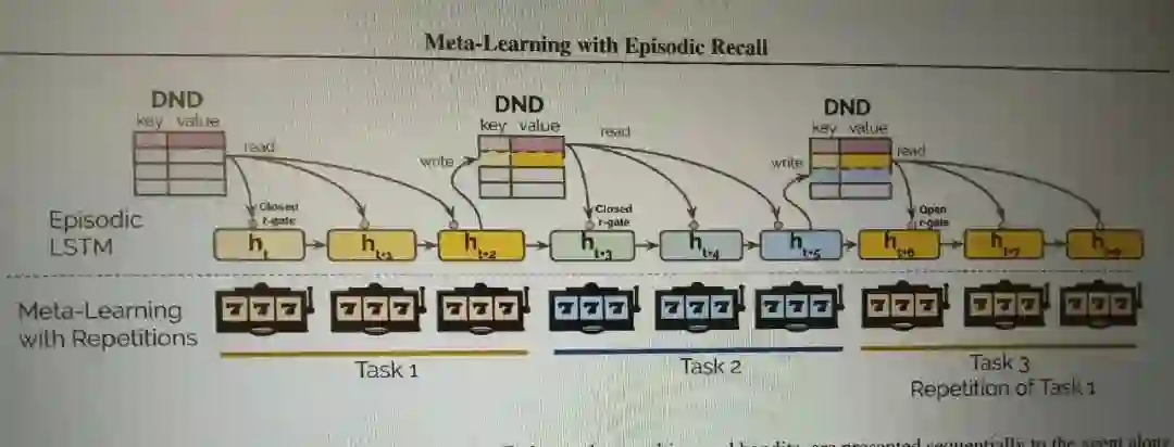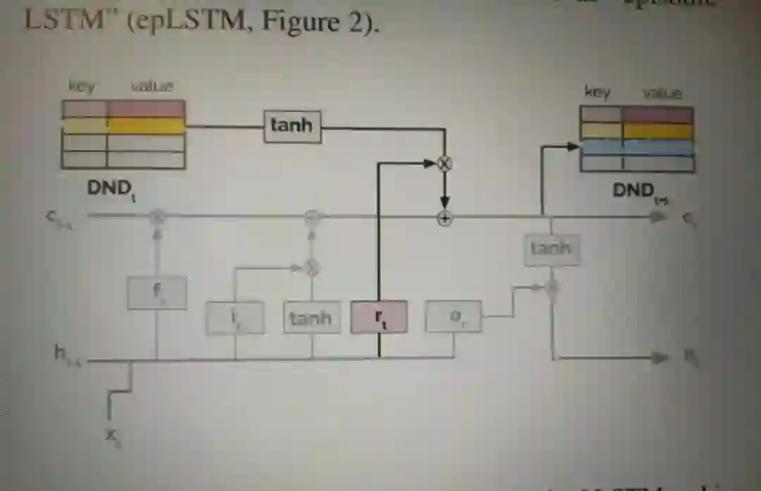 一个标准的LSTM + differentiable neural dictionary(DND)