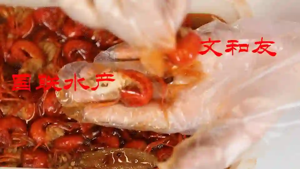 从个头上来说,文和友这款包装信息上也显示选用4-6钱的虾,不过,我们用国联水产的虾和它一对比,