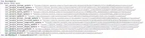 用户启用宏功能后,恶意代码会尝试搜索桌面快捷方式,并替换相应的链接文件。它主要针对的是五种快捷方式,即Skype、Google Chrome、MozillaFirefox、Opera和IE浏览器,当它找到匹配目标之后,便会从Google Drive或GitHub下载相应文件名的恶意软件。比如说,当恶意代码查找到了Google Chrome桌面快捷方式后,它会进行以下操作: