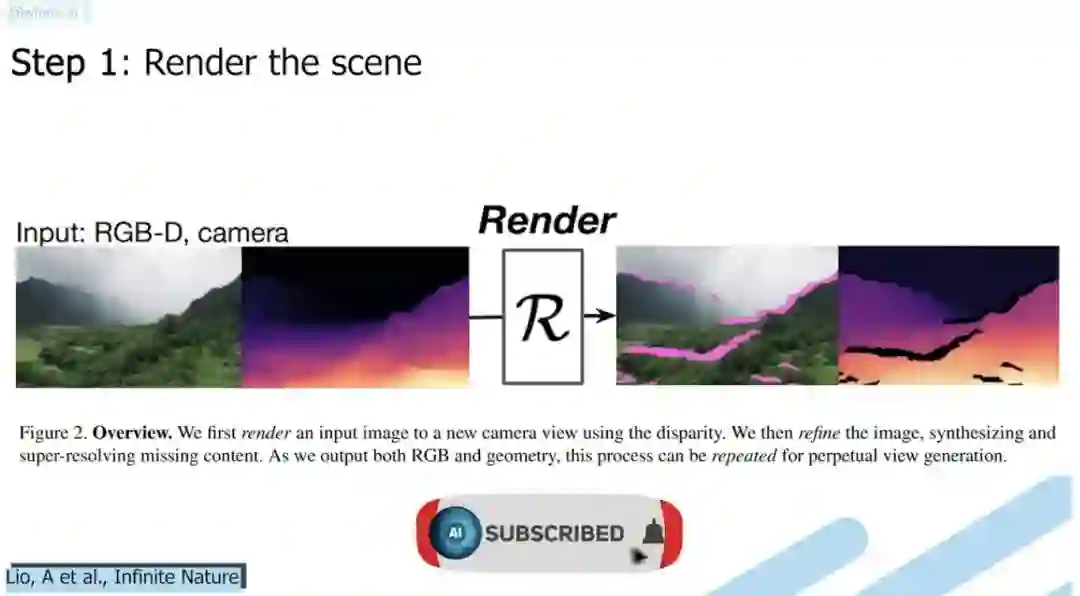 [4] Liu, A., Tucker, R., Jampani, V., Makadia, A., Snavely, N. and Kanazawa, A., 2020. Infinite Nature: Perpetual View Generation of Natural Scenes from a Single Image, https://arxiv.org/pdf/2012.09855.pdf
