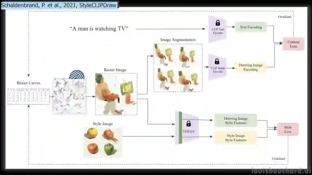 [9] a) CLIPDraw: exploring text-to-drawing synthesis through language-image encodersb) StyleCLIPDraw: Schaldenbrand, P., Liu, Z. and Oh, J., 2021. StyleCLIPDraw: Coupling Content and Style in Text-to-Drawing Synthesis.