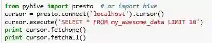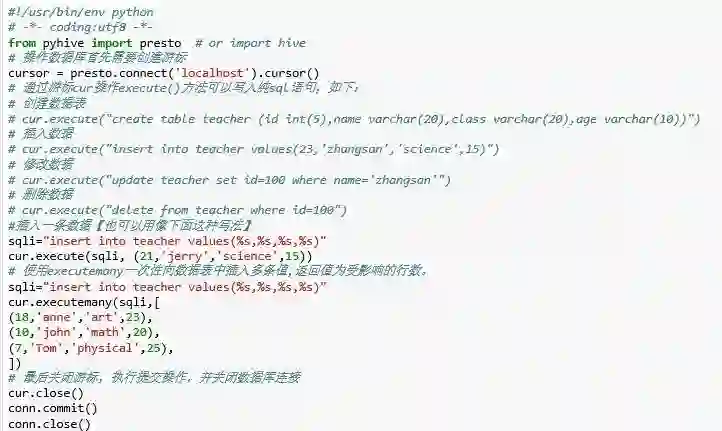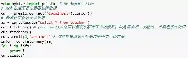 python中用于连接HiveServer2的客户端有3个:pyhs2,pyhive,impyla。官网的示例采用的是pyhs2,但pyhs2的官网已声明不再提供支持,建议使用impyla和pyhive。