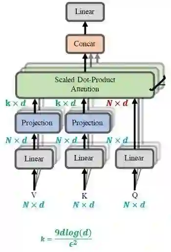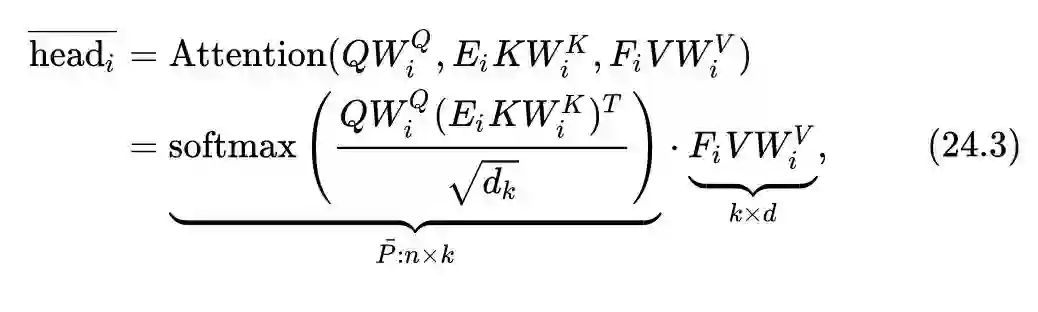 在计算key和value之前加入了2个线性层,使得 矩阵变为了 ,这样attention矩阵的维度就由原来的 变成了 。这就实现了用一个 矩阵来代替原来的 矩阵的效果,且计算复杂度变成了 ,与 成线性关系。