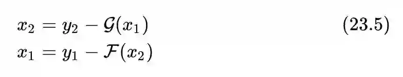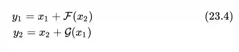 这一部分的想法来自论文:The Reversible Residual Network: Backpropagation Without Storing Activations,即使用可逆残差网络代替标准残差网络。